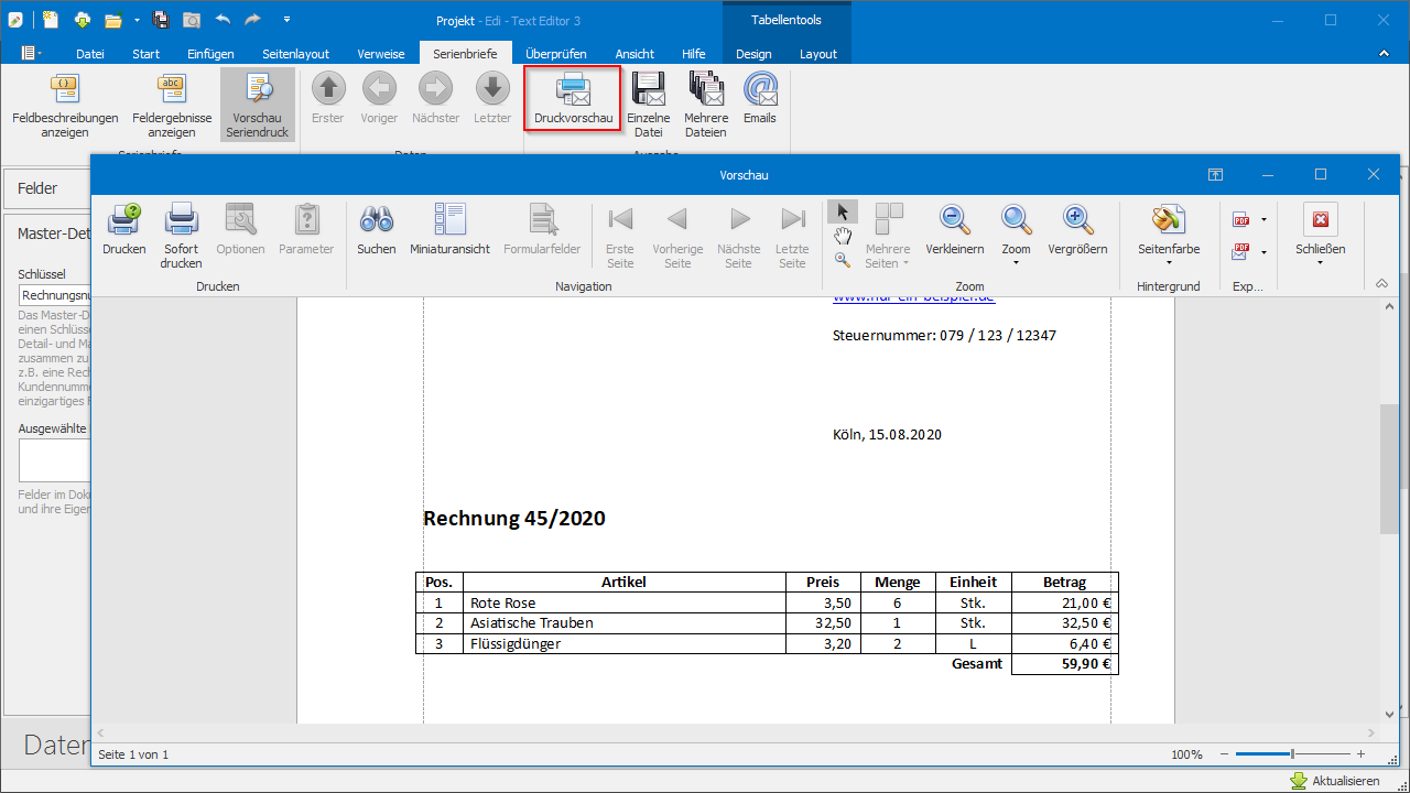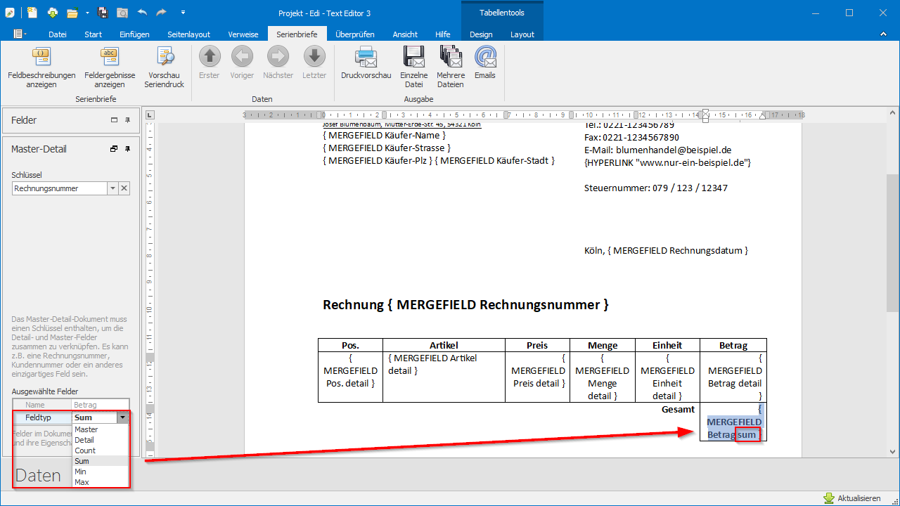Rechnung, Mahnung, Speisekarte als Master-Detail Serienbrief generieren